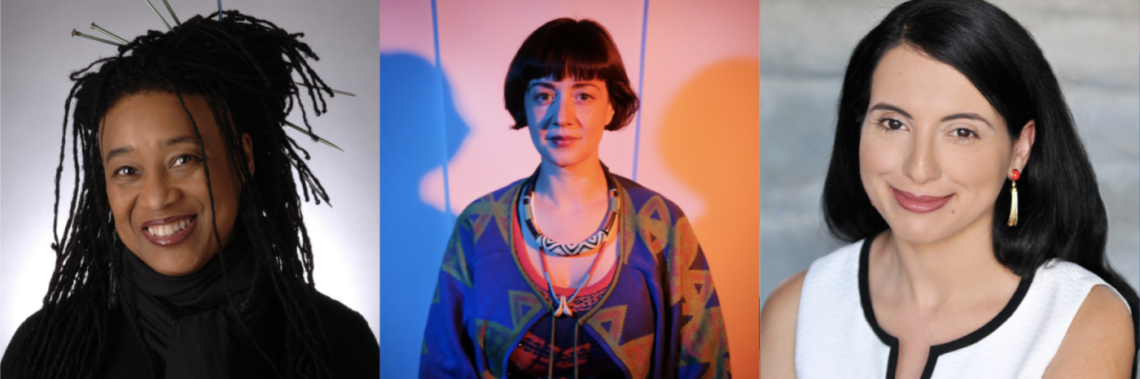 Image credits, left to right: Pamela Z photo courtesy of Shawn Harris; Amelia Winger-Bearskin photo courtesy of New Inc, New Museum, 2018; Betty Shamieh photo courtesy of the artist.