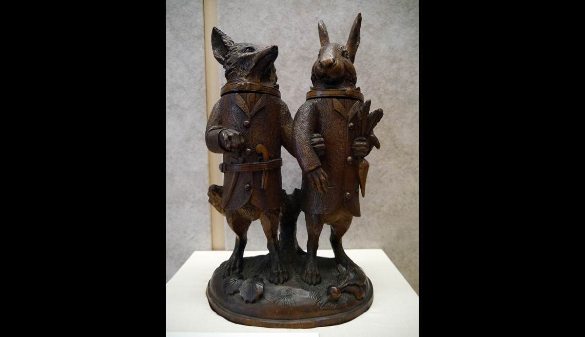 Inkstand; circa 1939–1945; W. Ward Fearnside collection, Hoover Institution Archives. This wooden inkstand from the office of the commander of the Mauthausen concentration camp near Linz, Austria, was carved by a Czechoslovakian Jehovah’s Witness imprisoned at the camp.