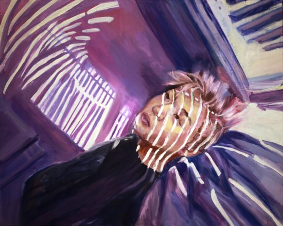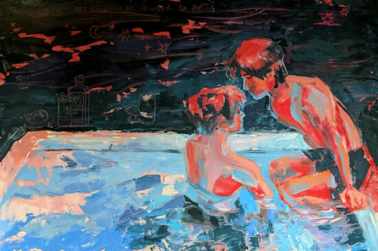 This is a painting of inception as an artist recreates a Delacroix masterpiece, “The Death of Sardanapalus” with a little boy looking up in awe.