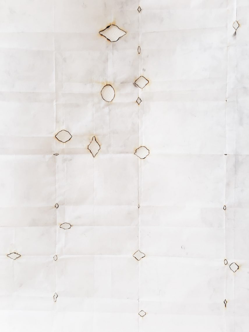 The Andromeda constellation re-imagined, through drawing, through burning holes in paper; how do we impose humanity upon the stars?