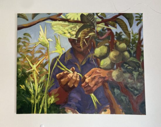 Submersion is a painting that experiments with figure in distortion, and blends the organic elements of nature with human form.