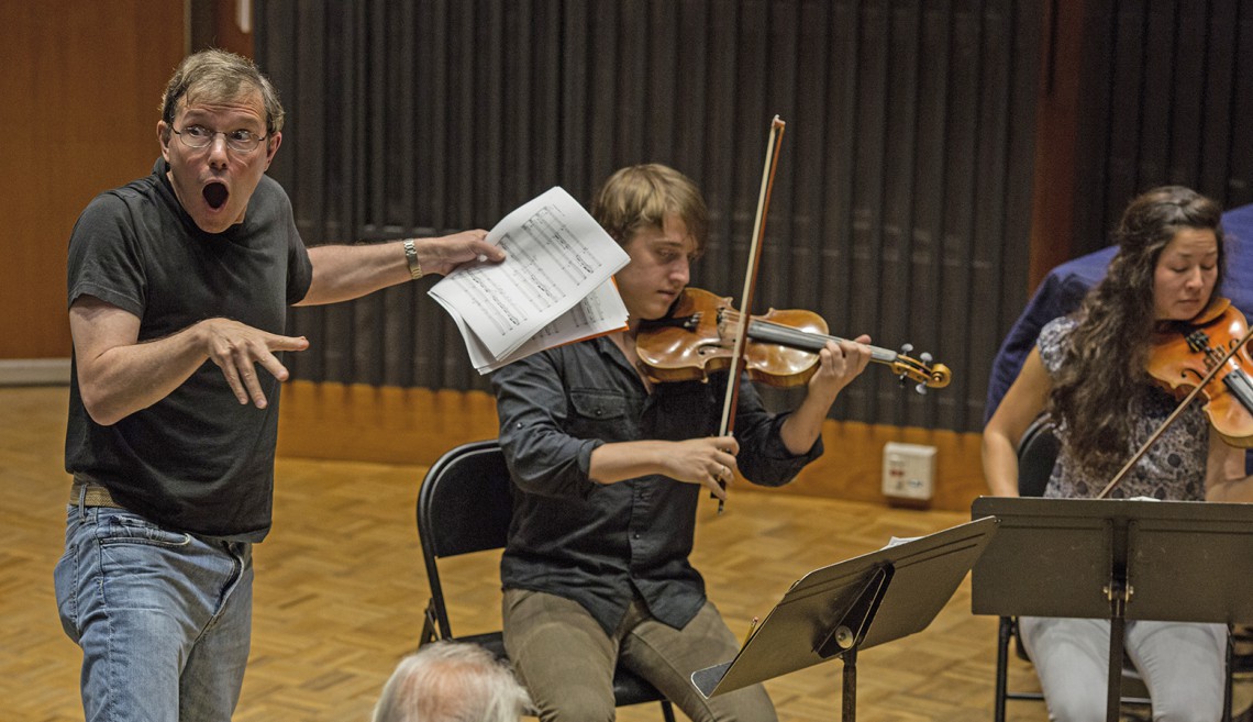 • Composer Rob Kapilow, a guest faculty member in the St. Lawrence String Quartet's Chamber Music Seminar, participates in a masterclass with Nicholas Tavani and Rachel Shapiro of the Aeolus Quartet.