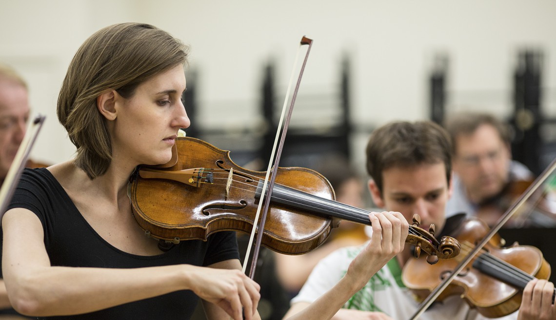 • Sarah Nematallah, violin, of the Cecilia String Quartet concentrates during a reading session.