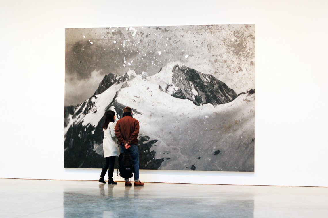 Students Emily Tian and Lawrence Neil in front of Rudolf Stingel's Untitled, 2010, at Gagosian Gallery in New York during the annual Arts Immersion trip.