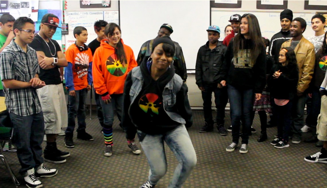 Students in the course learn to combine historical film footage and hip-hop music videos with an original soundtrack composed and performed by kids in the History Through Hip Hop (HHH) program in East Palo Alto.
