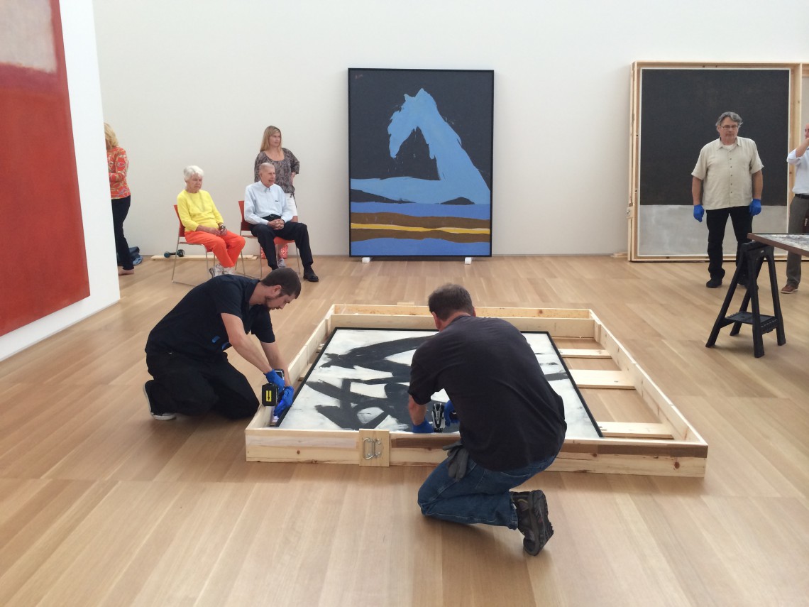 Unpacking artwork at the Anderson Collection at Stanford University.