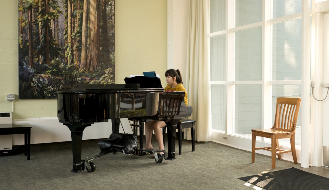 Brooks is a player who gets around. In addition to playing the piano at Harmony House, he gives favorable reviews to the instruments at Roble Hall, Ujamaa and Kimball. But his hands-down favorite piano is in the main CCRMA studio at the Knoll. It’s a little trickier to find than a dorm piano, but anyone with key access to the rooms at the Center for Computer Research in Music and Acoustics can use it. “I’ve used it over the summers and when I wasn’t taking classes in the building. It has the cleanest sound and action of any piano on campus.