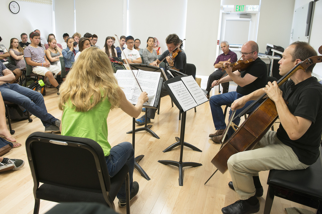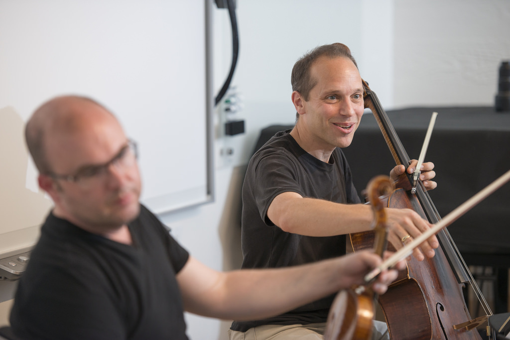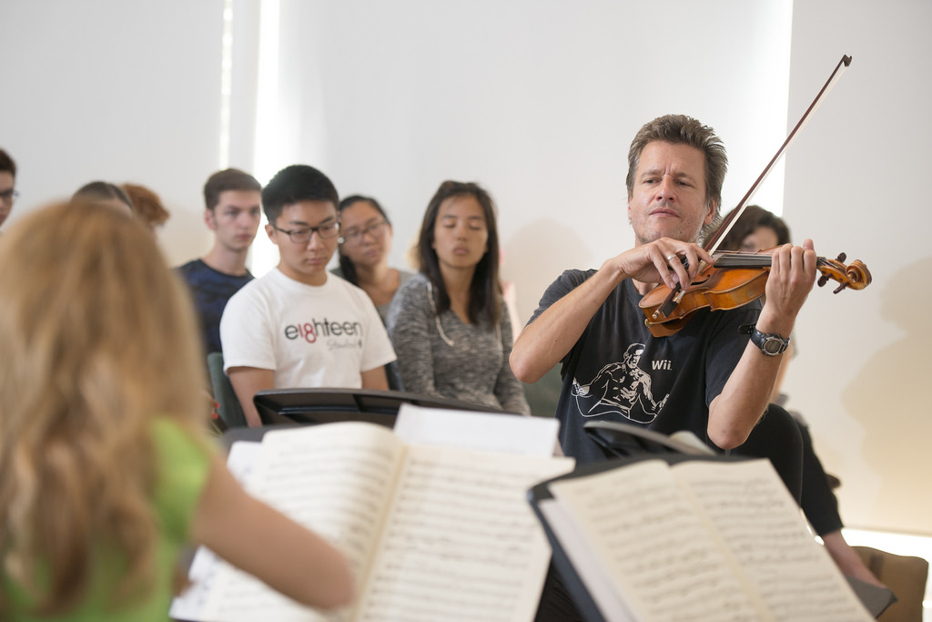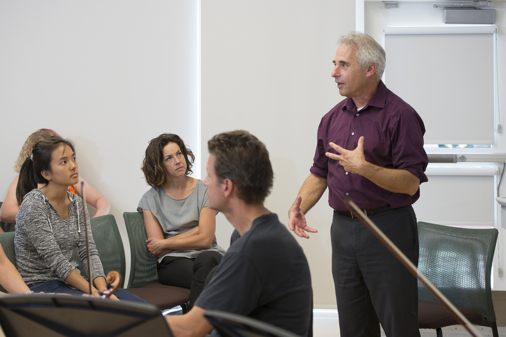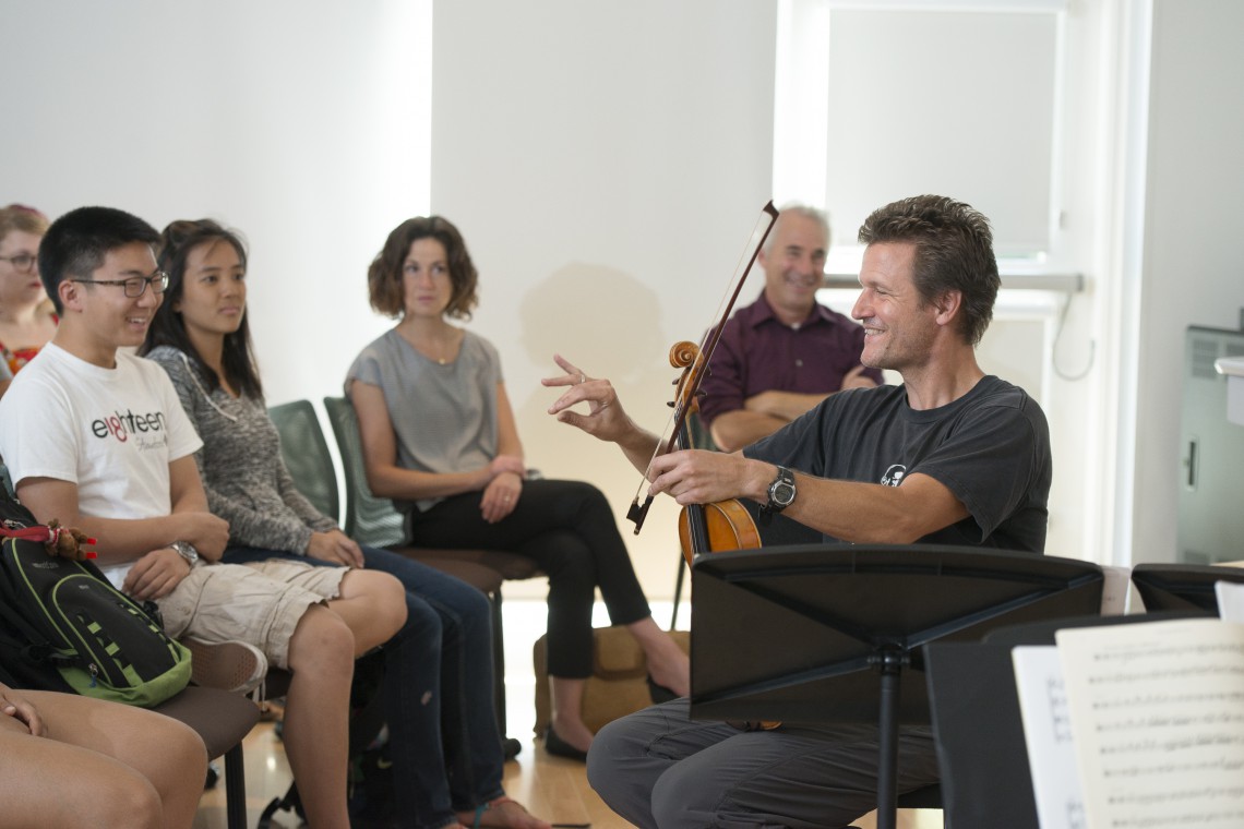 Geoff Nuttall violinist for the St. Lawrence String Quartet teaches about the minuet for ITALIC students in Burbank house. The St. Lawrence String Quartet plays for the ITALIC students in Burbank Dorm. ITALIC is Immersion in the Arts and Culture, a yearlong academic program that forms a tight-knit community, living together and attending classes in Stern Hall’s Burbank House residence. -