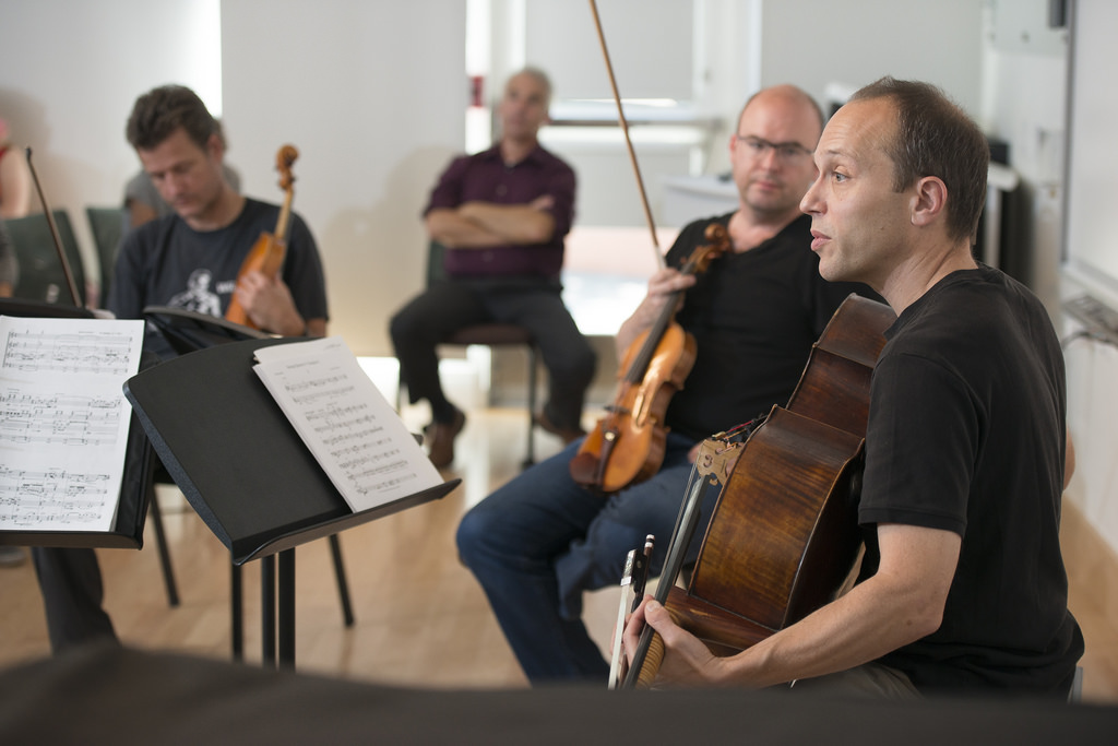 On Jan. 18, 2015, Stanford audiences will be the first to hear the latest fruits of the ongoing collaboration between SLSQ and John Adams, one of America’s foremost contemporary composers. Their history with Adams began when he heard them play his first full-scale string quartet at Stanford, John’s Book of Alleged Dances. He was suitably impressed to write String Quartet for the group, and they premiered it in 2009. “We’ve played John’s quartet 70 times in public by now,” says founding member Geoff Nuttall. “He’s a rock star in our world.”