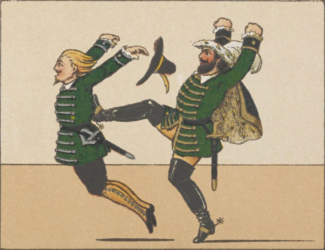 Opern-Tÿpen consists of six volumes of chromolithographic plates depicting scenes from 54 operas popular in 19th century Germany. Each opera plot has been distilled into a mere six frames, with liberally adapted accompanying text. The visual charms of Opern-Typen are evident. The plates reveal a sophisticated understanding of the effective use of line, gesture, and composition to convey drama and comedy in a tight narrative sequence. Future research may determine if these drawings captured or were informed by real-life performances, as is suggested by the inclusion of staging and scenic elements.