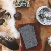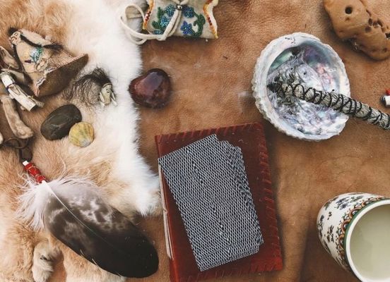 • Sacred space dedicated to my beadwork with sage for smudging, sacred stones, feathers, and a journal for brain dumping
