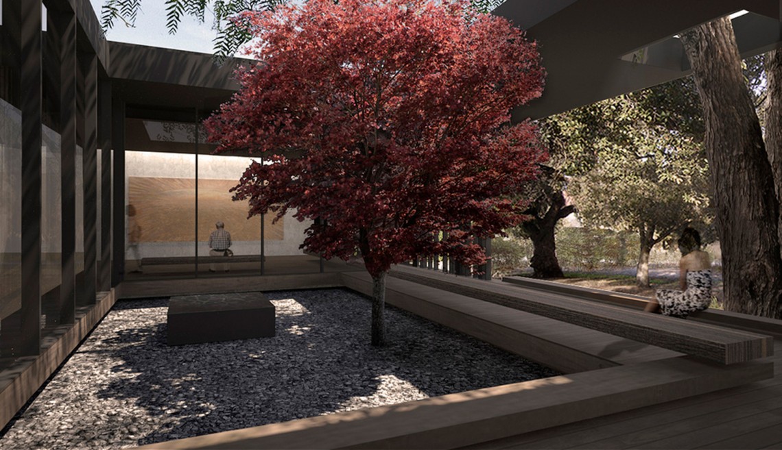 Outside the center will be landscaped spaces designed for meditation.